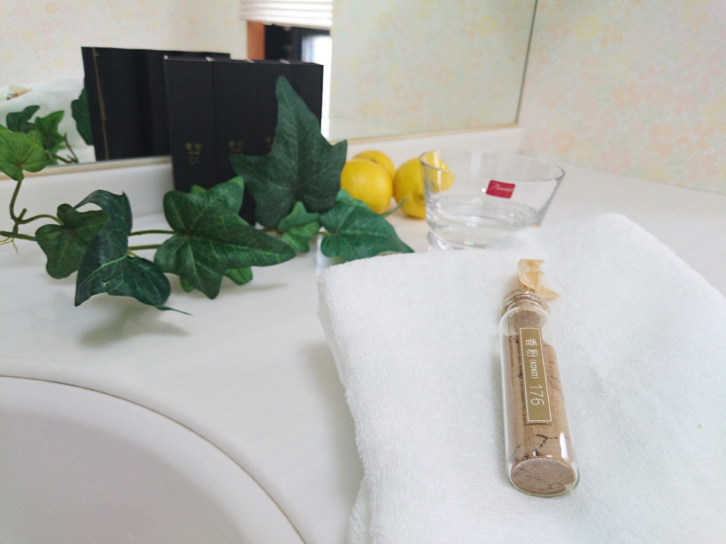 指や手のひらで擦り合わせます。体温で温めることによって、匂い立つ香粉の香りをお楽しみください。